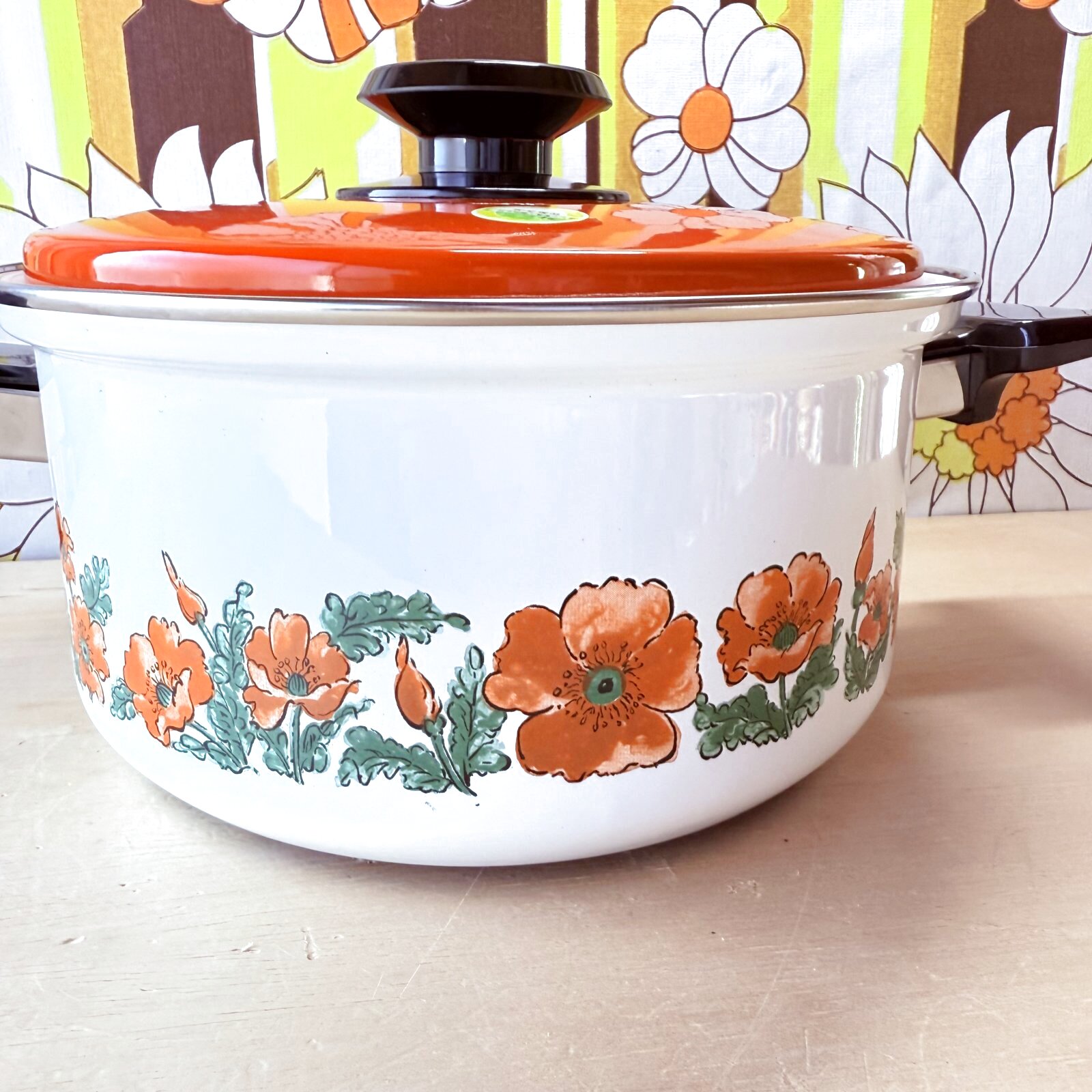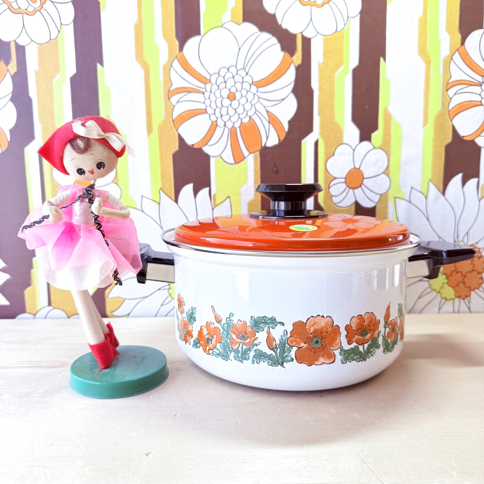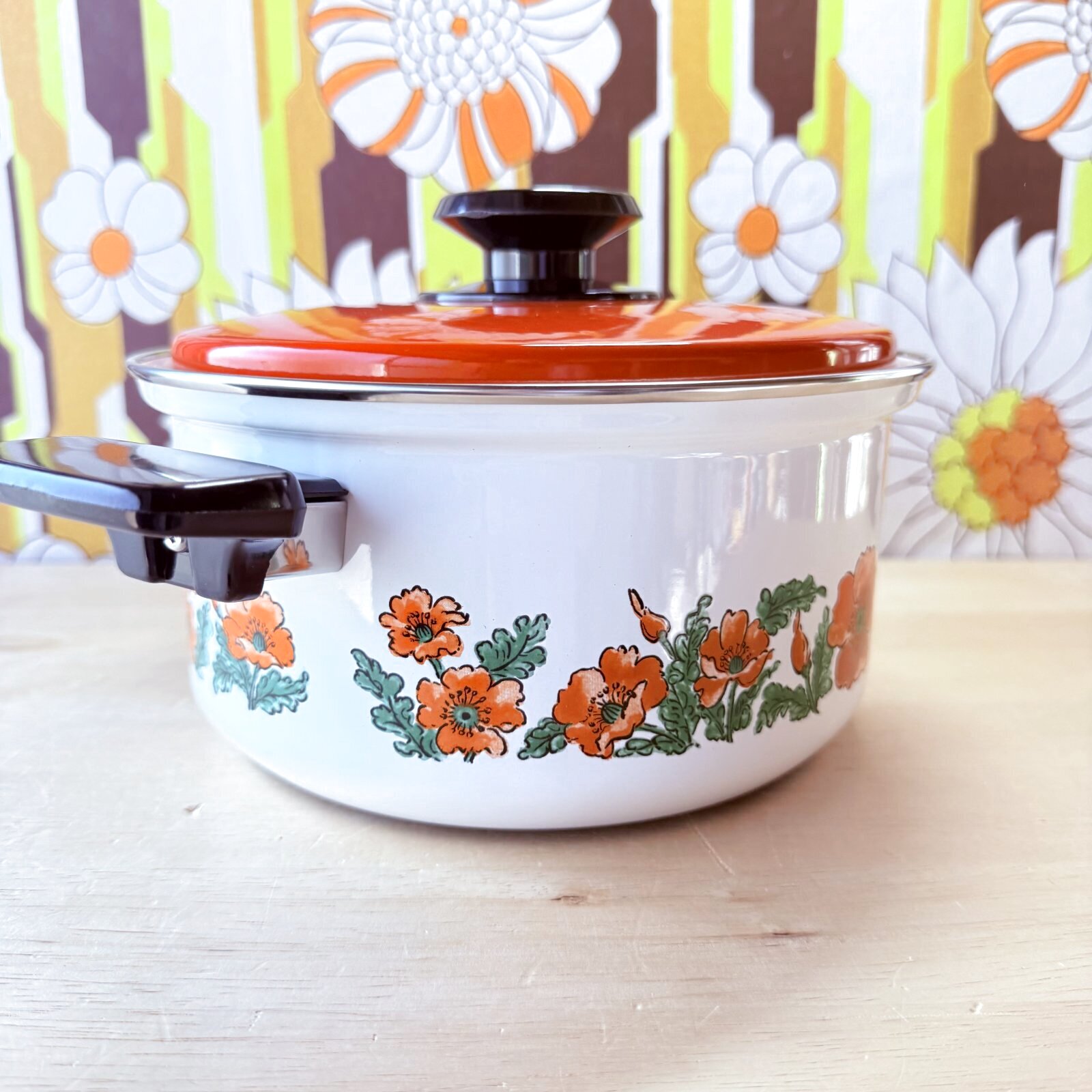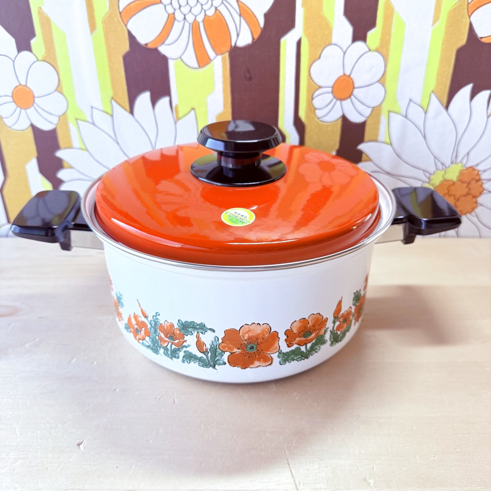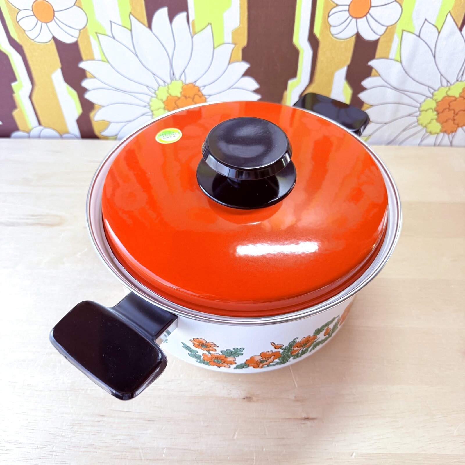 レトロポップな花柄のホーロー鍋 三基ホーロー