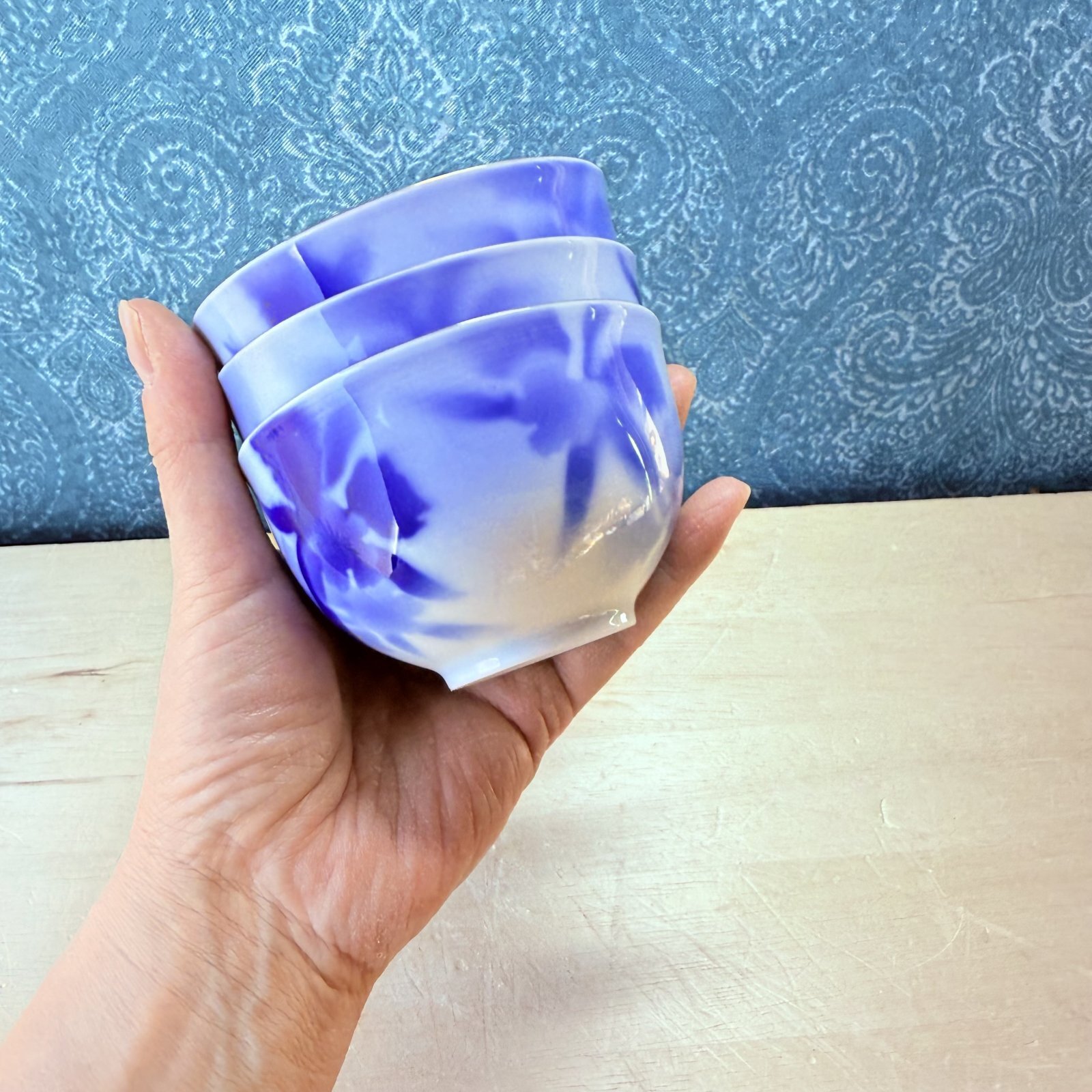 「フカガワブルー」と呼ばれる、透き通るような美しい青色の染付が施されています。