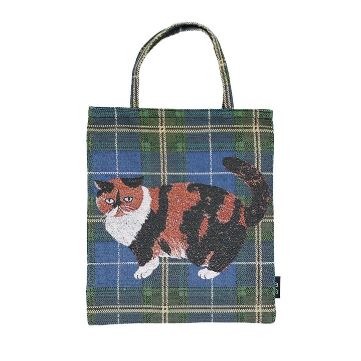 松尾ミユキさんが描くネコたちがデザインされたゴブラン織りのミニバッグ。